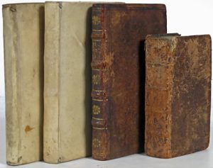 HALLER DE HALLERSTEIN, B.- Tractatus de spiritu dei. Antverpiae, typis Cornelij Woons, s.d., in-8° plein vélin.— VALCKENISSE, Ph. de.- Meditationes sive Piae considerationes [...]. Coloniae, Balth. ab Egmont & socios, s.d., in-8° plein veau + 1 ex. de la 2e édition in-8° s.d. parue chez les mêmes sous le titre "Fasciculus myrrhae sanctissimi patris [...] Bernardi, sive Meditationes", plein vélin.— RONGHE, Al. de.-Favus distillatus sive E. S. Bernardi [...] deprompatae preces [...]. Antverpiae, Lesteenium, & Engelbertum, 1657, in-24° plein veau.