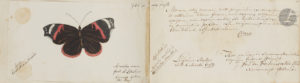 PAYS-BAS. — Album amicorum d’Antoni Willem PHILIPSE, Middelburg et Leiden 1785-1791 ; vol. oblong in-8 (10,5 x 20,5 cm) de 54 ff. (plus ff. blancs), rel. veau brun raciné avec pièces de titre en médaillons sur les plats (rel. un peu...