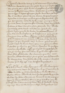 Célèbre relation de la captivité subie par la Mère Angélique et une douzaine de ses sœurs de Port-Royal des Champs, entre le 26 août 1664 et le 2 juillet 1665, chez les Annonciades de la rue Couture-Sainte-Catherine, par ordre de l’archevêque de Paris, qui voulait obtenir leur soumission en leur faisant signer un formulaire reconnaissant les condamnations papales des doctrines de Jansénius. La Mère Angélique rédigea sa Relation dans les mois suivant son retour à Port-Royal. Le texte fut publié pour la première fois en 1711, par les soins du Père Quesnel (probablement aux Pays-Bas), et réédité en 1724 avec d’autres relations ; en 1954 Louis Cognet en donna une édition chez Gallimard. Le manuscrit original semble être perdu. La présente copie ancienne, d’une écriture soignée et très lisible, comprend quelques feuillets d’une autre main plus cursive. Incipit : « Ce que l’on demande de moy en m’ordonnant d’ecrire une Relation exacte de ce qui s’est passé dans ma captivité »…