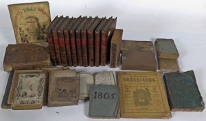 Dont : La foiropédie, almanach des chieurs, s.d.— Almanach des prisons [- Second tableau des prisons], 1795, 3 vol.— Portefeuille français, [1800 [- 1813]], 10 vol.— Almanach dédié aux demoiselles, 1828.— Le double almanach de Liége, 1829.— Almanach de Gotha, 1798 [- 1827,- 1838], 3 vol. (un avec supra libros).— Almanak Breiz-izel. [Bretagne], 1872.