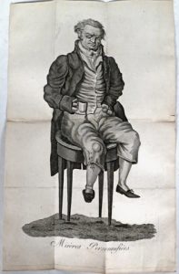 Ouvrage humoristique teinté d'humour non-sensique (éd. orig. en anglais : 1806).ll est écrit sous forme de dialogue recensant de façon comique les petites choses désagréables de la vie : passer une soirée avec des chasseurs qui se vantent sans fin de leur chasse, dïner avec "un lourdaud d'enfant dans sa quatorzième année" plutot qu'avec une jolie femme, aller se promener par un trop grand froid et "vous sentir phlébotomisé au visage", se cogner en ramassant l'éventail d'une dame en même temps que deux autres messieurs "sans être l'heureux mortel qui a le bonheur de le lui présenter", etc. Ex. complet des deux belles et rares grandes eaux-fortes (33 x 21 cm) et de quelques bois in texto. Joint : (1). Histoire complète et véritable de M. Mayeux, suivie de son traité de paix avec le juste-milieu et de ses aventures belliqueuses pendant les journées des 5 et 6 juin. Paris, chez les marchands de nouveautés, 1834, broché. Mayeux, personnage caricatural créé par Ch. Traviès incarne tous les vices de la bourgeoisie sous LouisPhilippe. Illustré d'un frontispice et d'un titre gravé rehaussés.— (2). PENHÖET, Ol. de; CHaBoUILLET, A.- Polichinelle, drame en trois actes illustré par Georges Cruishanck. Paris, bureaux de l'histoire pittoresque d'Angleterre, 1836, pleine skaï moderne. Édition originale de cette pièce illustrée du portrait de Polichinelle en frontispice et de 19 bandeaux figurant des scènes du théâtre de marionnettes. Selon Quérard, O. et T. de Penhöet seraient les pseudonymes d'O. Mainguet et A.Chabouillet.