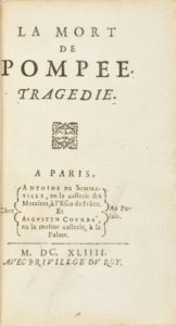 CORNEILLE (Pierre). LaMort de Pompee. Tragedie. AParis, chez Antoine de Sommaville et Augustin …