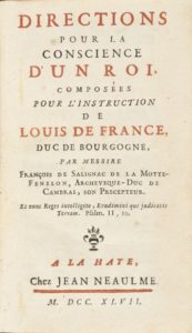 FÉNELON (François de). Ensemble de 7volumes. LesAvantures de Télémaque fils d'Ulysse. ÀBruxelles, chez François Foppens, 1700. 2tomes en un volume in-12, veau brun granité orné; reliure frottée avec coiffe supérieure restaurée (reliure de l'époque). —LesAventures de Télémaque, fils d'Ulysse. ÀParis, de l'imprimerie de P.Didot l'aîné, anVII. 2tomes en un volume in-12, veau brun raciné orné, tranches dorées; reliure frottée (reliure de l'époque). Illustration gravée sur cuivre hors texte: portrait par Remi Delvaux, et scènes par plusieurs artistes d'après Louis-Joseph Lefebvre. —Dialogues des morts composez pour l'éducation d'un prince. ÀParis, chez Florentin Delaulne, 1712. In-12, basane fauve marbrée ornée (reliure de la seconde moitié du xviiiesiècle). Édition en partie originale. —Directions pour la conscience d'un roi, composées pour l'instruction de Louis de France, duc de Bourgogne. ÀLaHaye, chez Jean Néaulme, 1747. Petit in-8, veau fauve orné (reliure de l'époque). Texte originellement imprimé à la suite de l'édition du Télémaque procurée à Amsterdam chez Wetstein en 1734, mais supprimée dans presque tous les exemplaires. Provenance: F.Renard (vignette ex-libris). —Éducation des filles. ÀParis, chez Pierre Aubouin, Pierre Emery et Charles Clousier, 1687. In-12, veau brun granité orné (reliure de l'époque). Édition originale, en second tirage. Provenance: l'un des présidents à mortier au Parlement de Rouen au xviiie de la famille LeRoux d'Esneval, Anne-Claude Robert, Pierre Robert ou Esprit-Robert. —Explication des maximes des saints sur la vie intérieure. ÀParis, chez Pierre Aubouin, Pierre Emery, Charles Clousier, 1697. In-12, chagrin orné (reliure moderne). Édition originale, exemplaire de premier tirage. —Première [Seconde, Troisième, Quatrième] lettre de Monseigneur l'archevêque duc de Cambray à Monseigneur l'évêque de Meaux. S.l., [vers 1698]. 4tomes en un volume petit in-12, basane brune granitée ornée; reliure usagée (reliure de l'époque). Sans la cinquième lettre. Provenance: F.Renard (vignette ex-libris).