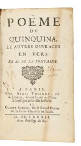 LAFONTAINE (Jean de). Poëme du quinquina, et autres ouvrages en vers. AParis, chez Denis Thierry …