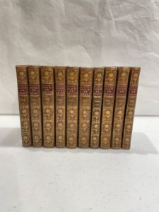 PRÉVOST (Antoine-François). Mémoires et avantures d'un homme de qualité qui s'est retiré du monde. ÀAmsterdam et à Leipzig, chez Arkstée Merkus, 1759. 8volumes petit in-12. —Relié à la suite: Suite de l'Histoire du chevalier DesGrieux, et de Manon Lescaut. ÀAmsterdam, chez Marc-Michel Rey, 1762. 2volumes petit in-12. —Soit en tout 10volumes petit in-12 en reliures homogènes de veau brun à dos lisses cloisonnés et fleuronnés avec pièce de titre et de tomaison continue grenat et brunes, coupes filetées, tranches marbrées; accroc à la coiffe du premier volume (reliure de l'époque). Mémoires et avantures d'un homme de qualité. I: (4dont la deuxième blanche)-vii-(une)-222pp. —II: (4dont les 2aux versos blanches)-232pp. —III: (4dont les 2aux versos blanches)-306p. —IV: (4dont les 2aux versos blanches)-190pp. —V: (4dont les 2aux versos blanches)-iv [mal chiffrées v]-287-(uneblanche)pp. —VI: (4dont les 2aux versos blanches)-312pp. —VII: (4dont les 2aux versos blanches)-186pp. —VIII: (2dont la seconde blanche)-154pp. —Suite. IX: (4dont les 2aux versos blanches)-240pp. —X: (4dont les 2aux versos blanches)-216pp. —Faux-titres des volumesI etVIII probablement manquants, l'«Avis de l'auteur» concernant Manon Lescaut relié erronément dans le vol.I au lieu du vol.II, ff.G3 etG4 inversés par le relieur dans le vol.VIII. Dernière édition corrigée par l'auteur, offrant le texte de l'édition de 1753 (avec l'épisode ajouté du prince italien) mais avec corrections de style et d'orthographe. Très rare. «Cet ouvrage, édité avec le privilège de SaMajesté le roi de Pologne Électeur de Saxe, est imprimé avec le plus grand soin sur un excellent papier filigrané. Il fut tiré en un petit nombre d'exemplaires, à notre avis, pour des Grands de l'époque (madame DuBarry en possédait un, celui que nous avons sous les yeux a appartenu [à la princesse de Tingry])» (Max Brun, n°XL, p.385). Relié avec la «Suite» de Manon Lescaut en édition originale qui fut parfois attribuée à l'abbé Prévost voire à Choderlos de Laclos, et aujourd'hui généralement donnée à un certain de Courcelles (d'après Quérard et Barbier). Une édition de 1760, mentionnée par Arsène Houssaye n'a jamais été retrouvée. Provenance: princesse de Tingry (vignettes ex-libris armoriée gravée sur cuivre). Éléonore-Pulchérie DesLaurents, fille du marquis de Saint-Alexandre, avait épousé Charles-François de Montmorency, prince de Tingry. —Marquis Ernest-Gabriel DesRoys (vignettes ex-libris armoriée du château de Gaillefontaine en Seine-Maritime). —Famille de Clermont-Tonnerre (vignette ex-libris armoriée). —Baron de LaChaise (vignette ex-libris). Exemplaire mentionné par Max Brun dans sa «Contribution bibliographique sur les éditions des Mémoires et avantures d'un homme de qualité et de Manon Lescaut publiées du vivant de l'abbé Prévost» (publiée en annexe de l'édition de Manon Lescaut donnée au Club des libraires de France en 1960, pp.358-359 et pp.385-387).
