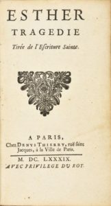 RACINE (Jean). Recueil de deux ouvrages reliés en un volume in-12, veau brun glacé, dos à nerfs, cloisonné et fleuronné avec pièce de titre grenat, fer au dauphin couronné et à la fleur de lys couronnée en queue de dos, coupes ornées, tranches dorées; coiffes, mors et coins refaits (reliure de l'époque). Les deux dernières tragédies de Jean Racine. —Esther. ÀParis, chez Denys Thierry, 1689. In-12, (14)-86-(6dont les 2dernières blanches)pp. Première édition in-12 parue la même année que l'originale in-4. Frontispice gravé sur cuivre hors texte. Une tragédie magnifiant piété et royauté. Douze ans s'étaient écoulés depuis que Racine, après la querelle de Phèdre, avait renoncé au théâtre, mais une commande de madame de Maintenon le décida à y revenir: protectrice de la maison d'éducation pour demoiselles de Saint-Cyr, celle-ci lui commanda «quelque espèce de poème moral ou historique», en exigeant «que l'amour y fût entièrement banni». Racine, qui avait fait son retour à la religion et s'était rapproché de Port-Royal en 1677, choisit un sujet religieux tiré du livre d'Esther où le pouvoir royal fait triompher la justice et la vraie religion. Il soumit au fur et à mesure les scènes écrites à sa commanditaire qui se déclara enchantée, et la pièce fut créée le 26 janvier 1689 par les pensionnaires de Saint-Cyr, devant la famille royale et les grands. Racine, qui avait pris le parti original de lier le chœur et l'action comme dans les tragédies grecques, qui avait enrichi sa pièce d'interludes musicaux composés par le maître de musique du roi et de Saint-Cyr Jean-Baptiste Moreau, et qui avait obtenu des crédits pour faire réaliser de fastueux décors, obtint un succès unanime: la pièce fut rejouée devant un public élargi à toute la Cour, et Louis XIV marqua sa satisfaction en octroyant à l'auteur le titre de «gentilhomme ordinaire de Sa Majesté». —Athalie. ÀParis, chez Denys Thierry, 1692. In-12, (14)-114-(2blanches)pp. Seconde édition in-12, présentant 3variantes avec le texte de l'édition originale parue l'année précédente au format in-4. Frontispice gravé sur cuivre hors texte. «Son dernier chef-d'œuvre» (Guibert, p.108). Après le succès d'Esther en 1689, Louis XIV passa commande à Racine d'une autre pièce à sujet religieux pour la maison de Saint-Cyr. Racine s'exécuta et fit de nouveau composer des chœurs par Jean-Baptiste Moreau. Cependant, le rigorisme religieux avait envahi la Cour, et les milieux ecclésiastiques proches de madame de Maintenon cherchèrent à faire interdire ce genre de divertissement qu'ils jugeaient impropre à l'éducation des jeunes filles. Le roi autorisa la pièce mais elle fut représentée dans la simplicité, sans costumes ni décor, et en comité restreint devant le roi, Monseigneur, madame de Maintenon, Fénelon et quelques rares invités. Après cette première, le 5 janvier 1691, eurent encore lieu trois autres représentations privées, et il fallut attendre 1716 pour la voir donnée en public. Provenance: famille de Clermont-Tonnerre (vignette armoriée ex-libris).