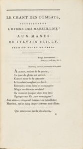 Rouget de Lisle (Joseph). Essais en vers et en prose. ÀParis, de l'imprimerie de P.Didot l'aîné. AnVede la République. 1796. In-8, (4dont la dernière blanche)-160-(2blanches)pp., demi-veau tabac, dos à nerfs fleuronné avec pièce de titre rouge, tête dorée; dos un peu frotté (reliure ancienne). Édition originale, comprenant le texte de la Marseillaise composée en 1792 (pp. 57-59). 4ff. gravés sur cuivre hors texte. Soit: une planche par Charles-Étienne Gaucher d'après Jean-Jacques-François LeBarbier, placée en frontispice à la nouvelle Adélaïde et Monville; et la partition d'un «Chant del'Hymne à l'Espérance», estampée sur 3ff. hors texte, comprenant une page de titre et 3pp. de musique notée. Exemplaire à grandes marges.