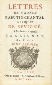 SÉVIGNÉ (Marie de Rabutin-Chantal, marquise de)). Lettres [...] à madame la comtesse de Grignan sa fille. ÀLaHaye, chez P.Gosse, J.Néaulme comp., 1726. 2tomes en un volume in-12, (20dont la deuxième blanche)-344-(2dont la seconde blanche)-(2dont la seconde blanche)-298-(14dont la dernière blanche)pp., basane brune granitée, dos à nerfs orné de filets noirs avec pièce de titre brune, encadrement de filets noirs sur les plats, tranches mouchetées; reliure un peu usagée (reliure de l'époque). Édition en partie originale. La correspondance de madame de Sévigné ne fut livrée que progressivement au public: un recueil de 31lettres fut d'abord imprimé à Troyes en 1725, aujourd'hui conservé à quelques rares exemplaires seulement; une seconde édition, la première diffusée, comprit 138lettres et fut publiée clandestinement à Rouen en 1726 par Nicolas-Claude Thiériot. La présente édition, corrigée et augmentée, comprend 177 lettres.