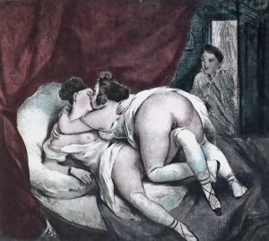Édition originale de cette traduction en allemand par Karl Spieler, sur base de l'édition originale parue à Bruxelles en 1833. Elle reprend en héliogravure les 12 lithographies originales de Deveria et Grévedon (11 sont coloriées, le titre illustré étant tiré en noir) qui ont été barrées par la suite. Tirage hors commerce sur presses privées à 300 ex. num. réservés aux souscripteurs (n° 1). # pas dans Pia.