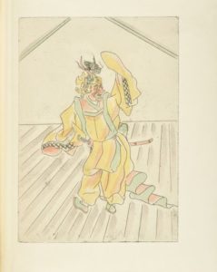 CLAUDEL (Paul). L'Oiseau noir dans le soleil levant. Paris, Éditions Excelsior, 1927. Grand in-8 carré, (8dont les 2premières, et deux aux versos blanches)-145-(7dont la troisième et les 3dernières blanches)pp., demi-chagrin noir, dos lisse, parchemin couvrant les plats, tête dorée, couvertures et dos conservés. Édition originale, un des 425exemplaires sur vergé d'Arches à la forme (un des 5hors commerce sur ce papier) avec 12hors texte. Illustration par Foujita, soit 12eaux-fortes (la première rehaussée à l'aquatinte), avec rehauts de couleurs au pochoir. Une gravure sur bois bicolore sur la couverture; plusieurs dessins reproduits en noir dans le texte.