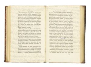 EXPÉDITION D'ÉGYPTE. —MARTIN (Pierre-Dominique). Histoire de l'expédition française en Égypte. Paris, J.-M.Eberhart, 1815. 2volumes in-8, (4)-iv-412 +(4dont les 2aux versos blanches)-320-(2)pp., demi-basane brune marbrée à coins, dos lisses filetés et fleuronnés avec pièces de titre et de tomaison grenat et bordeaux, tranches jaunes (reliure de l'époque). Édition originale. Ingénieur des Ponts-et-Chaussées, Pierre-Dominique Martin (1771-1855) participa à l'expédition d'Égypte et fut membre de l'Institut d'Égypte. Le présent ouvrage se fonde essentiellement sur sa propre expérience en Orient. Plus de 30pages portent des commentaires de la main du comte de Lavalette: t.I, pp.132 à 135, 209 à 211, 219, 221, 226-227, 246, 256, 264-266, 288, 294-297, 302, 306, 315, 317, 318, 337, 388, 391, 392, 412, t.II, p. 9, 15, 16, 131, 136, 137, 306-307. Avec quelques notes d'une autre main (t.I, pp.142-143). Le présent volume a été rogné court à la reliure, ce qui a occasionné une perte de mots manuscrit dans les marges. Sur la bataille navale d'Aboukir (t.I, pp.209 à 211 et 226-227): «J'arrivai à l'es[cadre] d'Aboukir le 1e [r de] thermidor [19juillet 1798] sur la [frégate] l'Arthémise qui a[vai] été chargée d'es[corter] le Grand-Maître Ho[mpesch, de l'Ordre de Malte, après la prise de l'île par Bonaparte] jusqu'aux îles de [Zara] au fond du golfe a[driatique]. J'avais reçu ordre de me rendre ensuite à Corfou et de là [à] Janina auprès d'Aly Pacha qui, heureusement pour moi, [se] battait devant Widdin [dans l'actuelle Bulgarie] contre Passwan-Oglou. En ralliant la f[lotte] à Aboukir, je fus poursuivi par une escadre anglaise qui vint la rec[onnaître] pour la première fois. Je montai à bord de l'Orient et je demandai [à] l'admiral des détails sur sa position et sur ses projets. Voici ce que l'admiral me dit: "J'étais libre de m'en retourner soit à Toulon, soit à C[orfou]... Restez avec nous, ajouta-t-il, [et vou]s serez témoin du combat et j'espère que vous porterez une bonne nouvelle [au] galen chef"...» Sur le général Kléber (t.II, p.131): «Le portrait du général Kléber a de la vérité, c'était effectivement un homme d'un haut mérite militaire et qui était doué de rares qualités de cœur. Mais il avait dans le caractère des singularités qui rendaient difficiles les rapports qu'on avait avec [lui], et dans l'esprit un penchant à la critique et à l'opposition qui [le] faisait redouter. Son âme était élevée mais son esprit avait peu de délicatesse et son langage était d'une grossièreté qui allait jus[qu'au] cynisme. Son accent allemand donnait à ses expressions quelque chose d'original et de piquant dont il connaissait l'effet et [dont] il a souvent abusé. Il n'aimait pas l'empereur mais il lui rendait justice et il se servait, pour peindre sa supériorité sur les autres hommes, d'une image qu'il est impossible de confier au pa[pier]. Sa mort a été un grand malheur pour l'armée d'Orient et même pour la France.» Le comte de lavalette évoque aussi la mort de Sulkowski (t.I, p.256), le siège d'Acre (t.I, pp.294-297, 302, 306), le départ de Bonaparte pour la France (t.I, p. 412), etc. Directeur des Postes sous le Consulat et l'Empire, Antoine-Marie Chamans de Lavalette (1769-1830) avait épousé Émilie de Beauharnais, nièce de l'impératrice Joséphine. Aide de camp de Bonaparte en Égypte, il devint administrateur de la Caisse d'amortissement puis fut fait directeur des Postes (1801-1814). Condamné à mort condamné à mort en 1816 pour son soutien à NapoléonIer durant les Cent Jours, il fut sauvé par une manœuvre audacieuse de son épouse qui prit sa place en prison. Il se réfugia alors en en Bavière auprès du prince Eugène. Gracié, il put rentrer en France en 1822. Provenance: Eugène de Beauharnais, d'après une mention manuscrite jointe écrite à la demande de la duchesse de Leuchtenberg, avec apostille de Michel Hennin (1848), qui fut au service d'Eugène de Beauharnais en Italie puis en Bavière, et fut fait chambellan du roi de Bavière: ces notes indiquent que l'ouvrage était alors, erronément, considéré comme annoté de la main du prince Eugène.