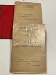 PÉGUY (Charles). Ensemble de 10volumes brochés, dont 7placés sous 4chemises de demi-maroquin rouge avec étuis cartonnés bordés (dos passés), et dont 2placés dans le même étui cartonné. —Joint, 2volumes brochés. Éditions originales. De la Cité socialiste. Paris, librairie de la Revue socialiste, [1897]. In-16, broché. Édition originale parue sous le pseudonyme «Pierre Deloire». —Ève. Paris, Cahiers de la quinzaine, série n°15, cahier n°4, 23décembre 1913. In-18; couverture supérieure détachée. —Jeanne d'Arc. Paris, librairie de la Revue socialiste, 1897. Grand in-8; traces de colle sur les gardes. Édition originale publiée sous le double pseudonyme «Marcel et Pierre Baudouin», de cette pièce de théâtre. —Marcel. Paris, Georges Bellais [Charles Péguy sous le nom de son ami Georges Bellais], 1898. Grand in-8; traces de colle sur les gardes. Édition originale publiée sous le pseudonyme «Pierre Baudouin», de cet ouvrage sous-titré «Premier dialogue de la cité harmonieuse». —LeMystère de la charité de Jeanne d'Arc. Paris, Cahiers de la quinzaine, série n°11, cahier n°6, 11janvier 1910. In-18. —II.LePorche du mystère de la deuxième vertu. Paris, Cahiers de la quinzaine, série n°13, cahier n°4, 17octobre 1911. In-18. —III.Le Mystère des saints Innocents. Paris, Cahiers de la quinzaine, série n°13, cahier n°12. In-18. —Notre patrie. Paris, Cahiers de la quinzaine, série n°7, cahier n°3, 17octobre 1905. In-18. —LaTapisserie de de Notre Dame. Paris, Cahiers de la quinzaine, série n°14, cahier n°10, 6mai 1913. In-18. —La Tapisserie de sainte Geneviève et de Jeanne d'Arc. Paris, Cahiers de la quinzaine, série n°14, cahier n°5, 26novembre 1912. In-16. Joint: Cahiers de la quinzaine. Série n°5, cahier n°3. Paris, 10novembre 1903. In-18, broché. Titre particulier: Cahier de l'inauguration du monument Renan à Tréguier le dimanche treize septembre dix-neuf cent trois. Provenance: l'homme politique Robert Schumann (initiales ex-libris sur la couverture). —Cahiers de la quinzaine. Série n°5, cahier n°7. Paris, 5janvier 1904. In-18, broché. Articles concernant la Hollande, les moines du mont Athos, et la grève des tisseurs d'Armentières. Provenance: l'homme politique Robert Schumann (initiales ex-libris sur la couverture).