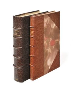 SARTRE (Jean-Paul). L'Existentialisme est un humanisme. Paris, Les Éditions Nagel, 1946. In-16, 141[dont les 2premières blanches]-(3dont la première blanche)pp., demi-maroquin à coins, dos à nerfs, tête dorée, couvertures et dos conservés (J.-F.Barbance). Édition originale tirée à 500exemplaires numérotés sur vélin supérieur Navarre.