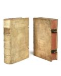 HISTOIRE et divers. XVIIIesiècles. —Ensemble d'environ 30volumes; quelques défauts et incomplétudes. Biblia sacra. Constantiæ, sumptibus Jacobi Friderici Bez sociorum, 1770. 4tomes en 2forts volumes in-folio, impression sur 2colonnes, peau de truie estampée à froid sur ais de bois, fermoirs métalliques, tranches rouges; quelques mouillures et déchirures (reliure de l'époque). Édition bilingue comprenant le texte latin de la vulgate dans sa version sixto-clémentine, avec une traduction allemande établie par un groupe de bénédictins de l'abbaye d'Ettenheimmünster sous la direction de Germain Cartier. Elle comprend un important apparat critique emprunté notamment aux Pères de l'Église, et, en appendice, une dissertation sur l'emplacement du paradis terrestre rédigée par le frère de Germain Cartier, Gall Cartier, également moine à l'abbaye d'Ettenheimmünster. Belle Nombreuses planches gravées sur cuivre hors texte. —LeClerc (Sébastien). Pratique de la géométrie sur le papier et sur le terrain. ÀParis, chez Claude Jombert, 1716. Petit in-12, veau brun marbré glacé (reliure de l'époque). Planches gravées sur cuivre hors texte, la plupart recto-verso. —LeClerc (Sébastien). Traité de géométrie théorique et pratique, à l'usage des artistes. ÀParis, chez Ch.Ant. Jombert, 1764. In-8, veau brun marbré orné. Illustration gravée sur cuivre, comprenant des planches hors texte (généralement dépliantes) et des vignettes dans le texte. —Orléans (Charlotte-Élisabeth de Bavière, duchesse d'). Fragmens de lettres originales. ÀHambourg, et se trouve à Paris, chez Maradan, 1788. 2tomes en un volume in-12, veau brun marbré (reliure de l'époque). Édition originale, partielle, des lettres de la célèbre princesse Palatine. —Satyre Ménippée, de la vertu du catholicon d'Espagne, et de la tenue des États de Paris. ÀRatisbone, chez les héritiers de Mathias Kerner, 1714. 3volumes petit in-8, veau fauve granité (reliure de l'époque). Planches gravées sur cuivre hors texte dont plusieurs dépliantes. Provenance: «l'avocat g[é]n[ér]al Thierry... 1715» puis «1789Maufoux» (ex-libris manuscrits). —Etc.