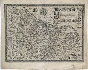 GUICCIARDINI, Lodovico.- Belgicarum provinciarum nova descriptio. [Amsterdam, 1612]. Gravure sur cuivre, cuv. 24,5 x 33,4 cm + bonnes marges (faiblement défraìchie).