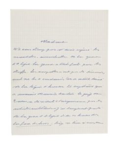 BEAUVOIR (Simone de). Lettre autographe signée à une dame. S.l.n.d. Unep. 1/2 in-folio. «Ne …