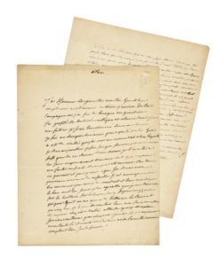 CHAMFORT (Sébastien-Roch-Nicolas). 2lettres autographes au sculpteur Jean-Denis Antoine. Paris, s.d. Paris, s.d. «J'ai l'honneur de présenter mes très humbles complimens à Monsieur Antoine. J'arrive de la campagne où j'ai fini la besogne en question. J'ai profité de toutes les critiques et observations qu'on m'a faites et je serois bien charmé de n'avoir son avis. Je suis au désespoir de n'avoir point parlé de lui hier à M[a]d[am]e Vestris que j'ai vue un moment et chez laquelle je dîne aujourd'hui [la comédienne Françoise-Rose Gourgaud, dite Rose Vestris]. Je suis sûr que son nom prononcé auroit suffi pour lui en donner l'idée. Oiserois-je l'inviter à lui faire un peu avant dîner une visite qui réparera ma faute, ou si cela dérangeroit Monsieur Antoine ne pourroit-il pas y venir après son dîner. Nous pourrions nous en aller ensemble. Si cet arrangement lui convenoit pas non plus, voudroit-il bien m'indiquer où il seroit plus agréable que je me trouvasse, soit les Tuilleries, soit le Luxembourg, depuis cinq heures jusque huit...» (une p. in-4, adresse au dos). ——[Paris], «ce jeudi matin». «Je suis désolé, Monsieur, que vous vous soyez donné la peine de passer deux fois chez, et que je me soit si mal expliqué dans mon billet. Je vous priois de vouloir bien me mander le jour et l'heure et le lieu qui vous convenoient dans une après-dînée de cette semaine à dater du dimanche inclusivement. N'ayant point reçu de vos nouvelles, j'ai disposé de mes après-dînées que je ne passe jamais chez moi dans une si belle saison. Un petit mot d'écrit eût tout prévenu et peut encor tout réparer. je suis libre vendredi et samedi depuis cinq et demi jusqu'à huit et je vous prie de me dire si vous le serez. Si vous voulez que j'aille vous chercher chez vous, ou au Luxembourg ou aux Thuilleries, au Palais-Royal ou chez moi, à votre choix, selon que vos affaires vous auront mené dans ces différens quartiers. Mais dans ce cas je vous prierois de vouloir bien me le faire savoir avant deux heures. Je suis si accablé d'affaires que je suis obligé de renoncer à mes courses de cheval le matin que la chaleur rend d'ailleurs moins agréables, c'est ce qui fait que je n'ai pu avoir l'honneur de vous voir chez vous...» (3/4p. in-4, adresse au dos, petite déchirure au feuillet d'adresse due à l'ouverture sans atteinte au texte). Secrétaire des princes puis du club des Jacobins, l'écrivain et publiciste Chamfort (1741-1794), auteur d'une pièce à succès, fut employé en 1776-1777 comme secrétaire des commandements du prince de Condé puis à partir de 1784 comme secrétaire du cabinet de Madame Élisabeth, sœur de LouisXVI. Brillant causeur et épistolier, proche de Madame Helvétius, il fut élu à l'Académie française en 1781. Acquis aux idées nouvelles, il s'engagea dans l'aventure révolutionnaire et fut un temps secrétaire du club des Jacobins. Il se lia avec Mirabeau et Talleyrand pour qui il écrivit des rapports et des discours, collabora à de nombreux journaux et entreprit avec Pierre-Louis Ginguené les monumentaux Tableaux de la Révolution. Sous la Terreur, se sachant soupçonné par le Comité de sûreté générale, il mit fin à ses jours. RARE. Joint: VOLTAIRE (François-Marie Arouet dit). Copie manuscrite ancienne d'une lettre au président Charles de Brosses. Ferney, 19août 1768. Concernant sa virulente querelle avec son correspondant au sujet de la terre de Tourney qu'il lui avait achetée.
