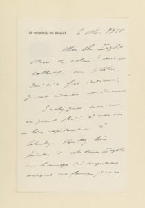 GAULLE (Charles de). Lettre autographe signée au général François Ingold. …