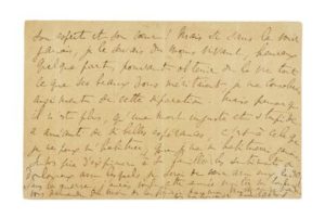 PROUST (Marcel). Lettre autographe signée «Marcel Proust» à Mme Jean Vittoré, belle-sœur d'Alfred Agostinelli. S.l., «27mai» [1915]. 4pp. in-12; document défraîchi avec fentes aux pliures. «Madame, j'ai prié des amis que j'ai à Nice [madame Catusse] de s'occuper de fleurs pour l'anniversaire du pauvre Alfred, et je me permets de les faire envoyer chez vous. On les remettra 50rue de la Paix le 30 de ma part et vous aurez la bonté d'indiquer au porteur où se trouve la tombe, à moins que ne vouliez vous charger de les déposer vous-même, comme je sais, parce qu'Alfred m'a toujours dit, que vous avez le culte du souvenir et vous vous rendez pieusement au cimetière. Cette affreuse guerre qui m'a enlevé presque tous mes amis, tués à la fleur de l'âge, et deux cousins, les inquiétudes que j'ai pour mon frère et d'autres parents qui sont sur le front, rien de tout cela n'affaiblit en moi le souvenir si triste et si tendre que je garde d'Alfred. je pense constamment à lui, mon amitié et mon regret ne font que devenir de plus en plus profonds. Certes sa présence me manque infiniment, j'aimais tant son esprit et son cœur! Mais si sans le voir jamais, je le savais du moins vivant, heureux quelque part, pouvant obtenir de la vie tout ce que ses beaux dons méritaient, je me consolerais aisément de cette séparation. Mais penser qu'il n'est plus, qu'une mort injuste et stupide a anéanti de si belles espérances, c'est à cela que je ne m'habituerai jamais. Je vous prie d'exprimer à sa famille les sentiments si douloureux avec lesquels je serai de cœur avec eux, le30. Sans la guerre, j'aurais voulu cette année visiter sa tombe. Je vous demande du moins de la fleurir pour moi. Veuillez agréer, Madame, tous mes hommages...» Un des modèle d'Albertine dans la Recherche, Alfred Agostinelli était mort dans un accident d’avion le 30 mai 1914, au large d’Antibes. Il avait servi à Marcel Proust de chauffeur en Normandie en 1907 et 1908, puis de secrétaire en 1913. Son départ au bout de quelques mois avait meurtri l'écrivain, qui l'aimait profondément. Pour tenter de le faire revenir, en vain, Marcel Proust avait financé le rêve de celui-ci d'apprendre à piloter des avions: l'accident de 1914 mit un terme à ses espérances de réunion, mais joua un rôle décisif dans sa décision de composer un cycle d'Albertine dans la Recherche.