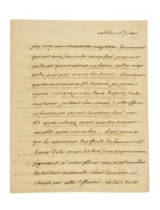 VOLTAIRE (François-Marie Arouet, dit). Lettre autographe signée «V» [à Claude-Philippe Fyot de LaMarche]. LesDélices [à Genève], «16juillet» [1762]. 3pp. in-4; petites fentes marginales. «J'ay reçu, mon respectable magistrat, le mémoire que vous avez bien voulu me confier. Je ne veux pas douter que vos arbitres ne fassent rendre ce qui est dû à un père et à un bienfaicteur. Il me paraît qu'entre un père et un fils, summum jus, summa injuria, vous avez pris tous deux le party de la conciliation. Je serais bien étonné si cette affaire ne finissait pas par une soumission de Mrvotre fils à vos volontez et par une transaction amiable entre vous et luy. Il me paraît que la restitution des fruits de l'année 1761, le prix de la coupe des bois, vous appartiennent. J'ignore si Mrvotre fils n'a rien à redemander de ses biens maternels. Votre mémoire n'éclaircit pas cette difficulté, et sans doute vous ne laisserez pas subsister cette source de procez qui pouraient un jour troubler votre famille. Les autres objets de discussion sont peu de chose, et doivent être abandonnez à votre générosité et à la résignation noble et respectueuse de Mrvotre fils. Je me flatte que votre arrangement sera bientôt fait puisqu'il est entre les mains des arbitres les plus éclairez et les plus intègres. Je prévois bien que monsieur votre fils n'ayant pas d'argent comptant à vous donner, vous soufrirez des délais. Que ne pui[s]-je venir à présent avec l'argent à la main entre le père et les fils! Des deniers comptants sont les premiers des arbitres. Peut-être serai-je assez heureux au mois de septembre pour venir vous offrir mes services. Je n'en désespère pas, ce serait pour moy le comble du bonheur de pouvoir vous prouver dans les derniers jours de ma vie combien je vous respecte et je vous aime. Vos médailles sont très joliment gravées, les légendes simples et nobles, l'institution utile et digne de vous. Je vous remercie avec tendresse de ce monument de votre cœur et de votre esprit []. Je me flatte que vous avez toujours auprès de vous madame la marquise de Paumi [Suzanne-Marguerite Fyot de LaMarche, épouse du marquis de Paulmy, Antoine-René de Voyer d'Argenson, fils d'une autre condisciple de Voltaire au lycée Louis-le-Grand, René-Louis de Voyer d'Argenson]. Elle doit vous donner autant de consolation que vous avez éprouvé de chagrin. Je partage l'un et l'autre, du fonds de on cœur. Comptez, je vous en conjure, sur mon respect, sur mon zèle, sur une amitié inviolable...» Ami de toujours de Voltaire, le marquis de LaMarche (1694-1768) avait été son condisciple au lycée Louis-le-Grand aux côtés des frères d'Argenson.