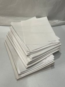 ENSEMBLE d'environ 300billets, cartes et lettres, principalement de remerciements ou de félicitation, adressées à Thierry Maulnier et à son épouse. Marcel Achard, Jean Amrouche, Jean Anouilh, Louis Aragon, Marcel Arland, Robert Aron, Jacques Audiberti, Dominique Aury, Marcel Aymé, Maurice Bardèche, Jean-Louis Barrault, Raymond Barre, Gérard Bauër, Jean de Beer, Henri Bernstein, Pierre Bourdan, Robert Brasillach, Roger Caillois, Pauline Carton, Georges Catroux, Louis-Ferdinand Céline, Gilbert Cesbron, Jacques Chaban-Delmas, François Chalais, Jacques Chirac, René Clair, Paul Claudel, Jean Cocteau, Jacques Copeau, Jean-Louis Curtis, Léon Daudet, Alain Decaux, Jean Delaporte, Michel Déon, Pierre Desgraupes, Michel Droit, Maurice Druon, Charles Dullin, Georges Dumézil, Jean Dutourd, René Étiemble, Alfred Fabre-Luce, Jean-Pierre Faye, Jean Foyer, Pierre Fresnay, André Frossard, Gaston Gallimard, Pierre Gaxotte, Jean Genet, André Gide, Jean Giraudoux, Valery Giscard d'Estaing, Julien Gracq, Julien Green, Paul Guth, Jean Guitton, Daniel Halévy, Jean Hamburger, Jacques Hébertot, Philippe Hériat, Arthur Honegger, Eugène Ionesco, René Jouglet, Louis Jouvet, Robert Laffont, René Lalou, Marcel Landowski, Jack Lang, Patrice de LaTour DuPin, Roland Laudenbach, Claude Lévi-Strauss, Félicien Marceau, Gabriel Marcel, Henri Massis, Claude Mauriac, François Mauriac, André Maurois, François Mitterrand, Michel Mohrt, René Monory, Henri de Montherlant, Paul Morand, Georges Neveu, François Nourissier, André Obey, Jean d'Ormesson, Olivier d'Ormesson, Wladimir d'Ormesson, Michel d'Ornano, Gaston Palewski, Brice Parain, Jean Paulhan, Louis Pauwels, Armand Petitjean, Alain Peyrefitte, Roger Peyrefitte, André Pierre, René Pleven, René Poirier, Bertrand Poirot-Delpech, Gilbert Prouteau, Pierre-Jean Rémy, Maurice Rheims, Jules Romains, Daniel Rops, Dominique de Roux, Jules Roy, Robert Sabatier, Armand Salacrou, Léopold Sédar-Senghor, Maurice Schumann, Jean Schlumberger, Jean-Jacques Servan-Schreiber, André Siegfried, Jacques Soustelle, André Suarès , Haroun Tazieff, Marcel Thiebaut, Maurice Toesca, Henri Troyat, Paul Valéry, Robert Verdier, Paul-Émile Victor, Philippe de Villiers, Maxime Weygand, etc.