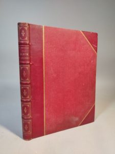 ABRAHAM Tancrède. Angers et ses environs. Album de gravures à l'eau-forte. Château-Gauthier, J. B. Bézier, 1876 ; grand in-4, demi-chagrin rouge à coins de l'époque, très ornés. Textes par le comte de Falloux, Paul Piolin, Jules André… Vignette de titre et 30 eaux-fortes originales hors-texte de Tancrède Abraham : vues, scènes, monuments d'Angers et de ses environs. Tirage à 330 exemplaires sur papier vergé de Hollande.