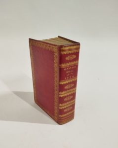 ALMANACH ROYAL, pour l'an M DCCC XXX. Présenté à Sa Majesté. Paris, A. Guyot et Scribe, 1830 ; fort volume in-8, reliure de l'époque maroquin rouge à long grain, dentelle sur les plats, dos à deux nerfs ornés, dentelle intérieure et tranches dorées [Noël Berthe]. Très bel exemplaire dans une rare reliure signée de Berthe.