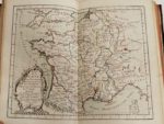 ATLAS. — Giovanni RIZZI ZANNONI. Atlas historique de la France ancienne & moderne. Mis au jour par le sire Desnos. Paris, octobre 1777, in-8, demi-basane de l'époque. Petit manque au dos. Suite de 34 cartes gravées sur cuivre et à double page montées sur onglets. Rehauts de couleurs. Ex-libris anonyme sur le contreplat gravé par Eug. Courboin et manuscrit du Capitaine O'Shee en tête.
