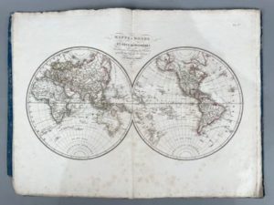 ATLAS POUR SERVIR À L'INTELLIGENCE DE L'HISTOIRE GÉNÉRALE DES VOYAGES DE LA HARPE, dressé par Ambroise Tardieu. Paris, E. Ledoux, 1821 ; gr. in-folio, cartonnage bleu de l'époque un peu usé, non rogné. Suite complète de 15 grandes cartes gravées sur cuivre et coloriées aux frontières dont onze à double page.
