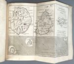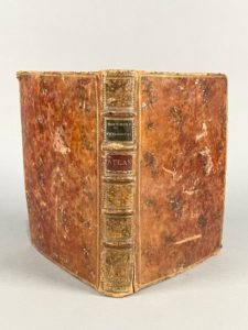 ATLAS DE TOUTES LES PARTIES CONNUES DU GLOBE TERRESTRE, dressé pour l'Histoire philosophique & politique des établissemens & du commerce des Européens dans les deux Indes. (Paris, 1780) ; in-4 veau marbré de l'époque, dos à nerfs orné de motifs dorés, mors fendus, griffures et usures. Atlas de Rigobert Bonne prévu pour accompagner l'ouvrage de François Raynal. Il comprend 50 CARTES GRAVÉES SUR CUIVRE ET PLUSIEURS FOIS REPLIÉES et 22 tableaux statistiques dont 12 repliés.