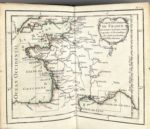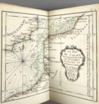 ATLAS. - Rigobert BONNE. Atlas maritime, ou Cartes réduites de toutes les côtes de France. Paris, Lattré, vers 1762 (Approbation) ; petit in-12 monté sur onglets, reliure de l'époque maroquin vieux rouge, dentelle dorée sur les plats, dos lisse orné (sans la pièce de titre). Joli atlas entièrement gravé et soigneusement aquarellé. Titre avec grande vignette, feuillet de dédicace au roi et 30 PLANCHES À DOUBLE PAGE : 12 CARTES DES CÔTES ET DES ÎLES (il n'y a pas encore la Corse) et 18 DE PLANS DES PRINCIPAUX PORTS.