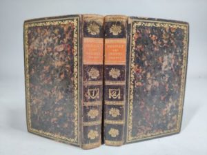 BOUILLY Jean-Nicolas. Les Jeunes Femmes. Paris, L. Janet, vers 1820 ; 2 vol. in-8 basane marbrée de l'époque, filets dorés, dos lisses ornés de motifs dorés, dentelle dorée. Deux vignettes de titres et 16 figures hors-texte gravées sur métal. Quelques légères rousseurs.