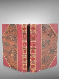 CHAMPOLLION-FIGEAC Jacques-Joseph. Traité élémentaire d'Archéologie. Monuments d'Architecture, de Sculpture et de Peinture... Paris, Fournier, 1843 ; deux volumes in-16, demi-maroquin rouge à coins de l'époque, dos à nerfs très ornés. Collection de l'Encyclopédie Portative. Avec 4 planches gravées repliées.