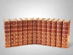 CREVIER Jean-Baptiste. Histoire des empereurs romains, depuis Auguste jusqu'à Constantin. Paris, Desaint & Saillant, 1763-1755 ; 12 forts vol. in-12, reliures anciennes maroquin rouge, dos lisses ornés de motifs dorés, tranches dorées. Carte gravée repliée.