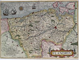 (Flandres) - Ens. 3 cartes - KAERIUS, Petrus.- Flandria. [Amsterdam, Blaeu, 1612]. Gravure sur cuivre, TC 23 x 31 cm + marges, territoires rehaussées à l'aquarelle.