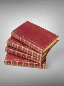 DEMOUSTIER Charles-Albert. Lettres à Émilie sur la mythologie Paris, Saintin, 1826 ; 4 vol. in-16 maroquin rouge ancien, filet doré, dos lisses ornés, tranches dorées. Édition ornée de 12 figures néo-classiques anonymes accompagnée de 16 planches à plusieurs sujets.