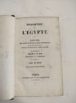 DESCRIPTION DE L'ÉGYPTE, ou Recueil des observations et des recherches… faites pendant l'expédition de l'Armée française. Seconde édition. Paris, C.L.F. Panckoucke, 1821-1826 ; 26 volumes in-8 (texte) et 4 volumes in-plano (planches), reliures uniformes de l'époque demi-veau fauve, dos à nerfs ornés de motifs dorés. Collection complète des 26 volumes du texte et de quatre d'atlas (sur 12). - Détail : ANTIQUITÉS, tome III, 1822. — 69 planches dont 21 doubles, 5 triples et une quadruple. ANTIQUITÉS, tome V, 1823. — 89 planches dont 14 doubles et une triple. HISTOIRE NATURELLE, tome I, 1826. — 62 planches. ATLAS GÉOGRAPHIQUE. 1826. — 50 planches gravées donc 41 cartes à double page et 6 simples. Les planches dessinées d'après nature et gravées par les meilleurs maîtres restituent au mieux la majestueuse ampleur de la plupart des sujets. Collection bien et solidement reliée. De la bibliothèque de Jules-Edmond Renouard de Bussière, ambassadeur, pair de France (1804-1888) avec ex-libris. Ensemble 30 volumes. NOTA : LOT VENDU SOUS LE RÉGIME FISCAL DE L'IMPORTATION TEMPORAIRE.