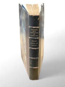 FENAILLE Maurice. État général des tapisseries de la manufacture des Gobelins… 1600-1900. Paris, Hachette, 1905 ; fort in-4 demi-maroquin bleu à coin, tête dorée, couverture, une fente à un mors. Savant, ouvrage illustré de 100 reproductions dont un grand nombre hors-texte. Tirage à 325 exemplaires sur papier vélin.