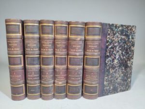 GUILBERT Aristide. Histoire des villes de France. Paris, Furne et Cie ; Perrotin, Fournier, 1845-1848 ; 6 forts vol. in-4, demi-chagrin bleu nuit, dos à nerfs ornés. Édition accompagnée de 100 planches hors-texte gravées sur métal dont 12 en couleurs : sites, monuments, vues de villes… Quelques légères rousseurs.