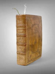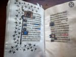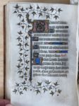HEURES À L'USAGE DE PARIS. Manuscrit sur peau de vélin, de la seconde moitié du XVe siècle, in-8 (160 x 115 mm) de 173 feuillets, reliure du milieu du XIXe siècle, veau fauve entièrement orné d'un décor à froid, dos à quatre nerfs, tranches dorées. Livre d'heures calligraphié en bâtardes aux encres brunes, rouge et bleue, relevé d'environ 130 initiales sur fonds à l'or fin ornementés en bleu, rose ou blanc d'une hauteur de 2 ou 3 lignes et de centaines d'autres de plus petit corps. Sept pages sont décorées sur trois côtés d'une antenne feuillagée d'or et filigranée partant d'une grande initiale historiée. Le volume commence par 12 feuillets consacrés aux mois de l'année.