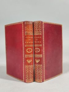 HOMERE. Iliade. Traduzione del cav. Vicenzo Monti. Milan, Stamperia Reale, 1812 ; 2 vol. in-12, maroquin rouge ancien, petite dentelle sur les plats, dos lisses ornés, tranches dorées. Édition dédiée au prince Eugène comme vice-roi d'Italie.