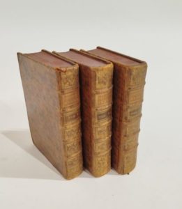 [LA CHESNAYE DES BOIS François-Alexandre Aubert de]. Dictionnaire généalogique, héraldique, chronologique et historique… Paris, Duchesne, 1757 ; 3 volumes in-12, veau jaspé de l'époque, dos à nerfs ornés. Les trois premiers volumes de cet important ouvrage, le dernier volume des quatre suivants paraîtra en 1765.