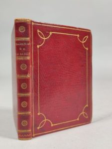 LA SABLIÈRE Antoine de Rambouillet de. Madrigaux. Paris, Duchesne, 1758 ; in-16, reliure du temps maroquin rouge, jeu de filets dorés, dos lisses ornés de motifs dorés, tranches dorées. Encadrement et vignettes, différentes à toutes les pages, tirés en rouge.
