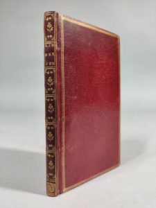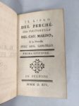MARINO Giambattista. Il Libro del Perché, colla Pastorella, e la novella dell'ang. Gabriello. Prima edizione. In Pelusio, MMM. D. XIV (1757 ?) ; in-12 de [2] feuillets, 91 pages, maroquin rouge de l'époque, filets dorés, dos lisse orné de motifs dorés, tranches dorées. Élégante reliure parisienne en maroquin.