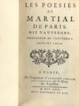 MARTIAL D'AUVERGNE. Les Poésies de Martial de Paris, dit d'Auvergne. Paris, Antoine Urbain …