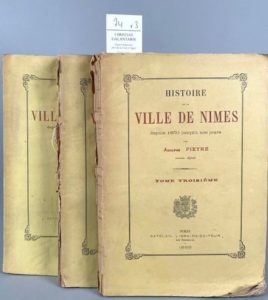 PIEYRE Adolphe. Histoire de la ville de Nîmes depuis 1830. Nîmes, Cathelan, 1886-1888 ; 3 vol. …