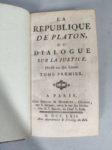 PLATON. La République, ou Dialogue sur la Justice. Paris, Brocas & Humblot, 1762 ; 2 volumes …