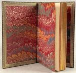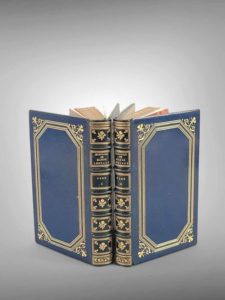 PRÉVOST Antoine-François. Histoire du Chevalier des Grieux et de Manon Lescaut. Amsterdam [Paris], La Compagnie [François Didot], 1753 ; 2 volumes in-12, maroquin bleu nuit, décor doré sur les plats, dos à nerfs ornés, dentelle intérieure, tranches dorées (Joly r[elieur]d[oreur]. Édition ornée de 8 belles figures de Pasquier (6) et Gravelot (2). Édition définitive et la première illustrée, en second tirage avec le carton de page 149-150, que l'on reconnaît à un astérisque.