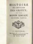 PRÉVOST Antoine-François. Histoire du Chevalier des Grieux et de Manon Lescaut. Amsterdam …