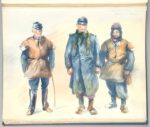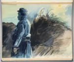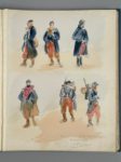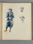 RÉQUIN Commandant E. Silhouettes du Front. Souvenirs de trente mois de guerre. Paris, Devambez, vers 1918 ; in-4 monté sur onglets, toile bleue. Suite de 40 planches en couleur de types et de scènes dessinées d'après nature. Préface du maréchal Joffre. — Papier vélin de Hollande.